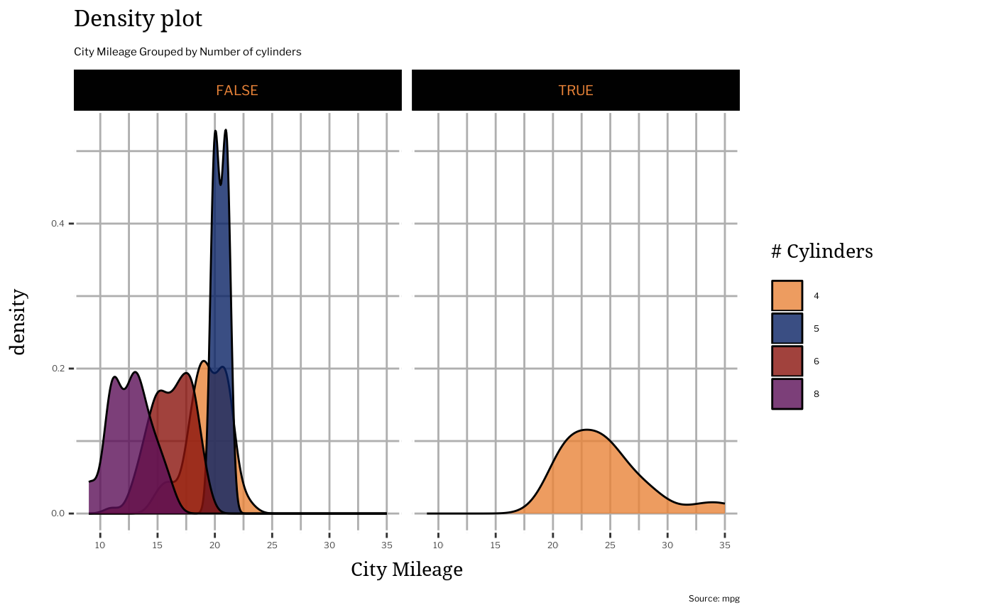 geom_density(aes(fill = factor(cyl)), alpha = 0.8) +