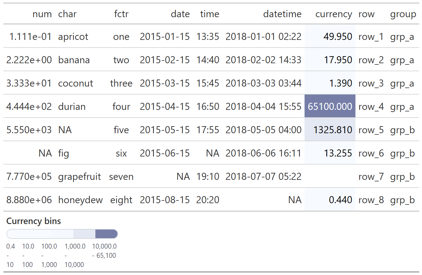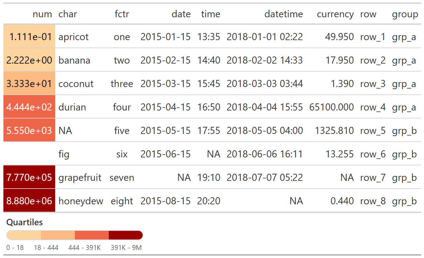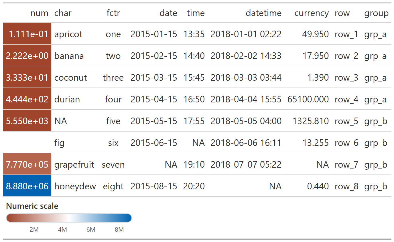 gtscale_data_color_continuous() colors the column and adds a matching gradient legend.